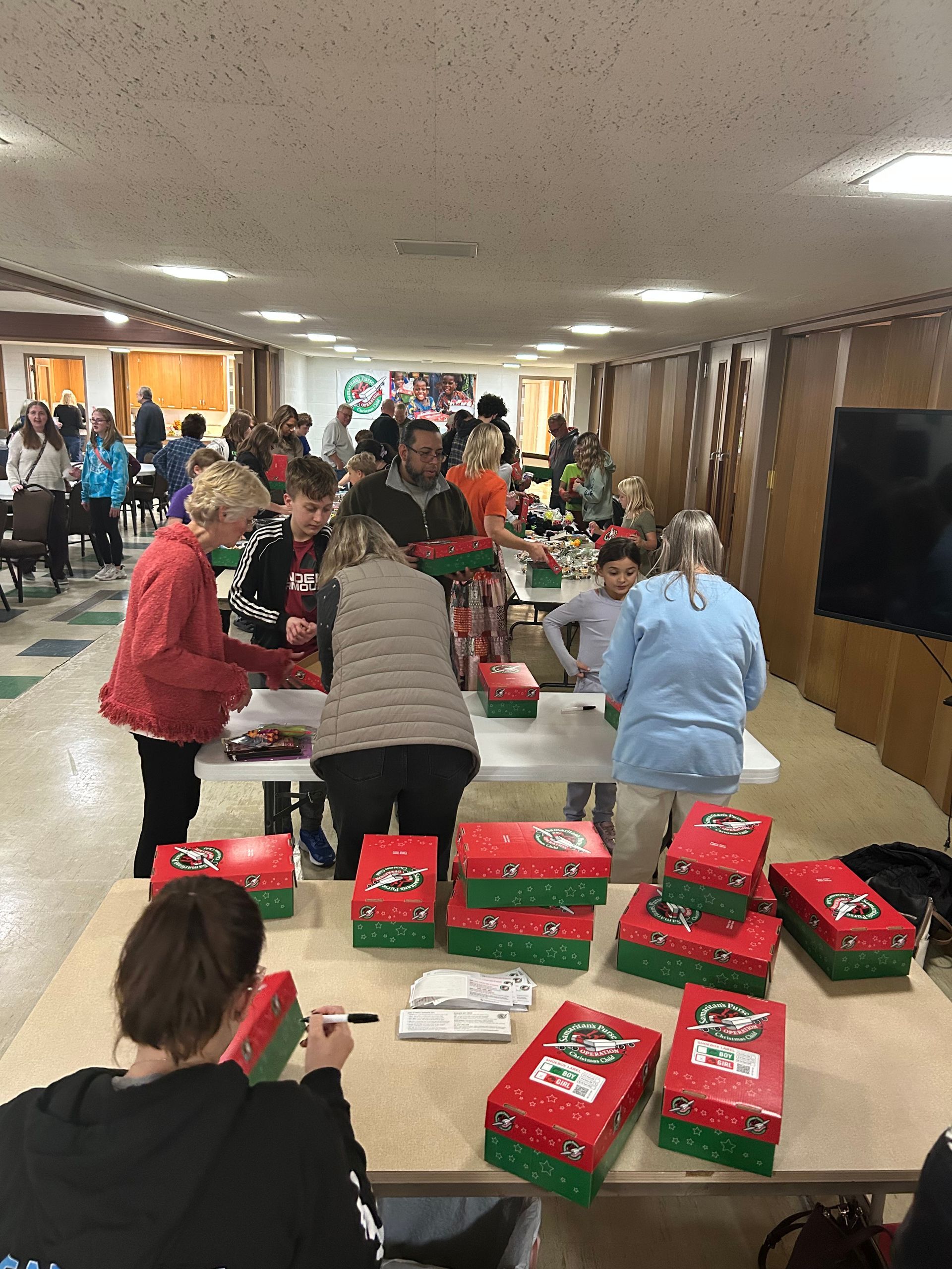 Operation Christmas Child box packing 2025